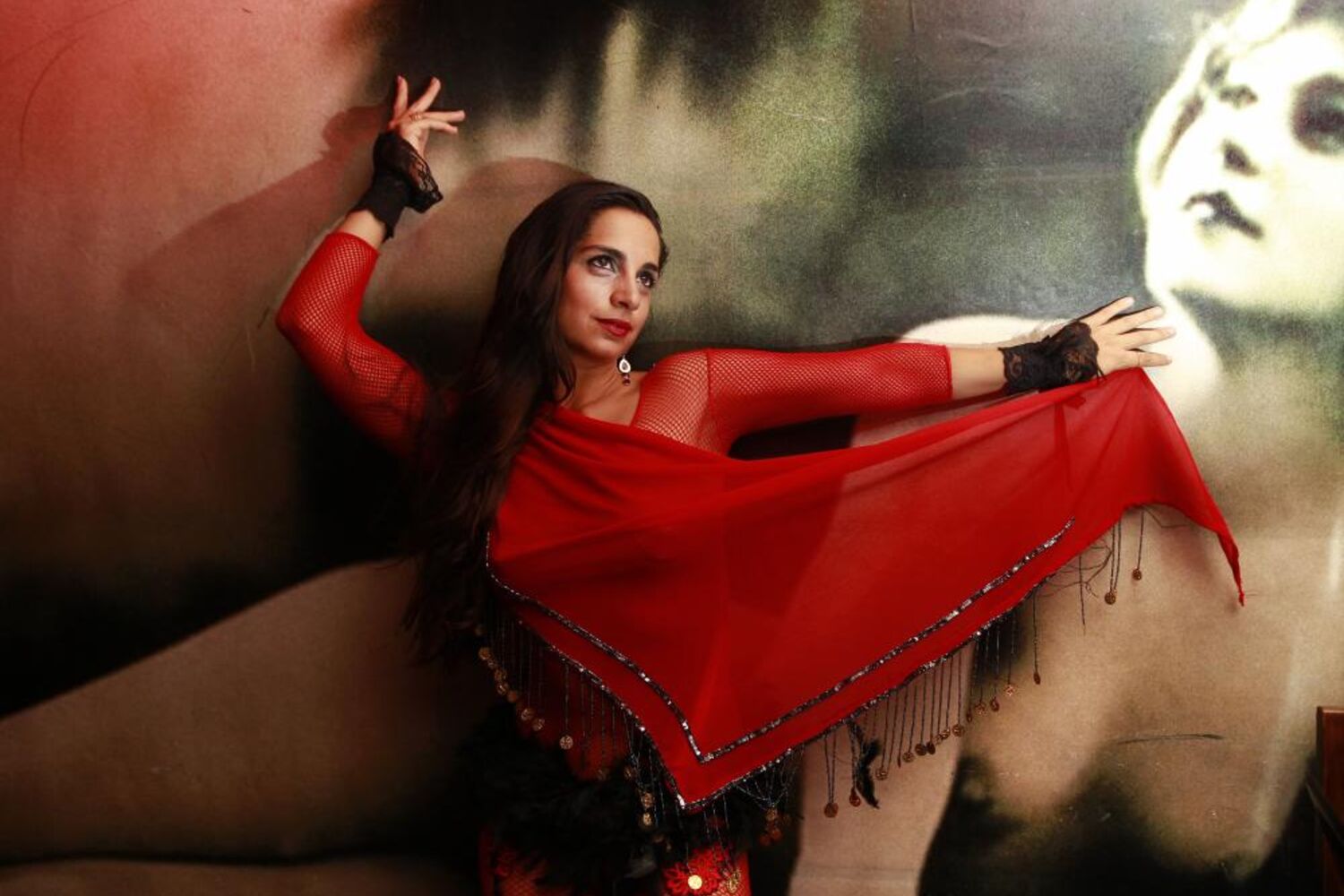 Um lenço vermelho começa na mão aberta e, sem nada na manga, é descoberto na parte de cima do minúsculo biquini. O contraste completa a dupla. Chega a belíssima ‘Miss Tea' ou o alter ego de Caroline Oulman. A familiar do compositor predilecto de Amália, o ímpar Alan Oulman, pára o trânsito de uma cidade inteira. Possui toque levantino, uma imprevisibilidade cigana, fogo do Médio Oriente e lembra a Rota da Seda. Provou o ioga, faz meditação e acredita: "Dançando, encontramos uma linguagem, um caminho para dar à luz a voz da alma."