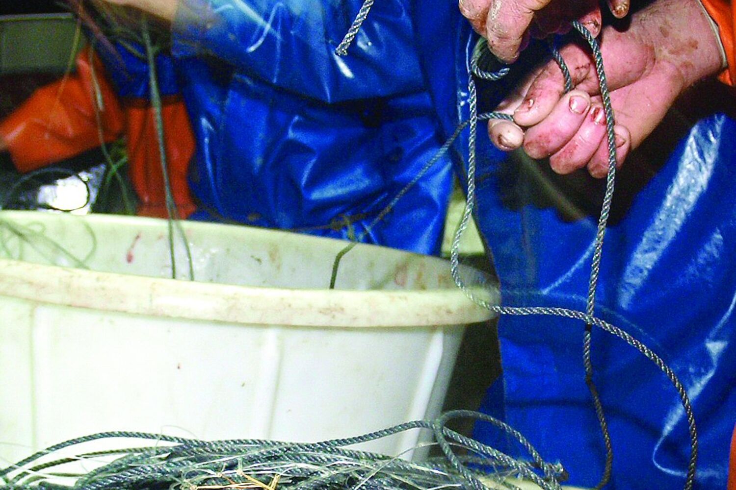 A noite está mais fria que as anteriores. Os tripulantes, vestidos com oleados, tiram o peixe que vem agarrado ao anzol no andamento da linha puxada a alta velocidade. Deitam-nos em caixas de plástico, que os homens mais à ré vão acondicionando. Na proa, outro homem recolhe as linhas em bidões. E, no final, ainda têm que lançar outra arte com novo isco.
