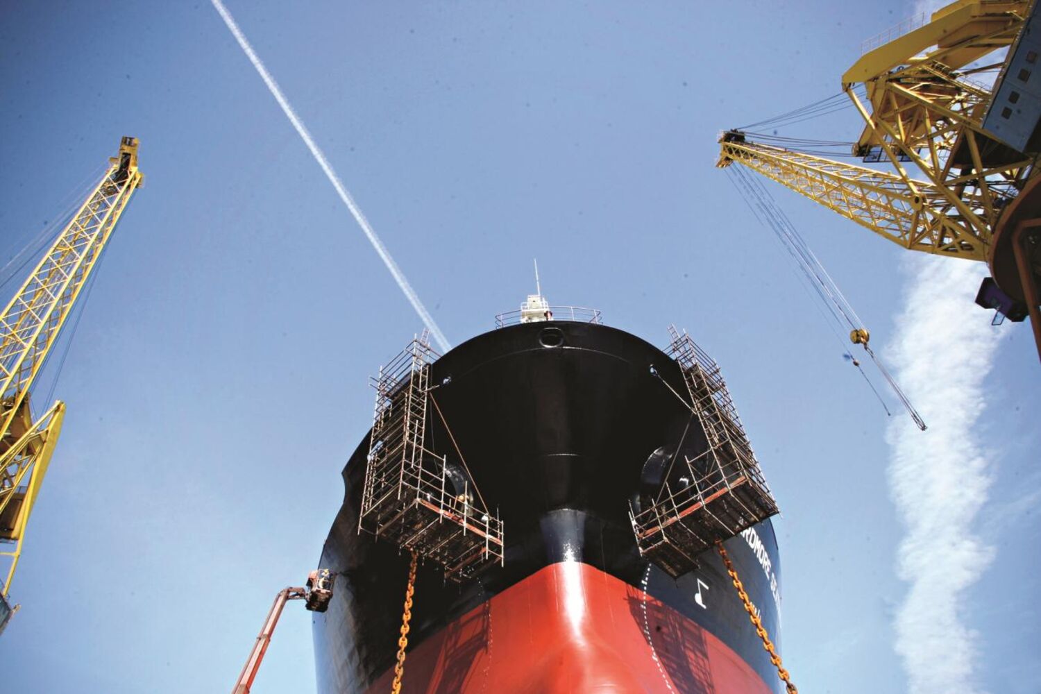 Na cabina de João Toscano, com vista aérea colossal sobre a doca 20, onde se encontra em trabalhos de decapagem do casco o navio de bandeira grega ‘Filikon' - 150 mil toneladas de porte em 275 metros de comprimento -, comanda-se a movimentação de peças e equipamentos com mais de 100 toneladas de peso ou as comportas de 440 toneladas, que separam as águas do Sado das docas secas. Subindo mais uns lances de escada, já a 90 metros de altura, no topo do pórtico - 150 metros de largura - avistam-se os restantes navios no estaleiro. As outras cinco docas estão ocupadas: no Hydrolift - com três docas de acesso comum - estão em reparação o ‘Club Med 2', navio francês de passageiros, o graneleiro dinamarquês ‘Nord-pol' e o petroleiro cipriota ‘Ardmore Seatrader'. Junto ao ‘Filikon', nas docas 21 e 22 estão os petroleiros ‘Sanko Advance' e o ‘Seaexpress', liberiano e filipino, respectivamente. O dia soalheiro que se formou ao cair da neblina matinal é a prova de uma das mais-valias desta região portuguesa na reparação naval: o clima.