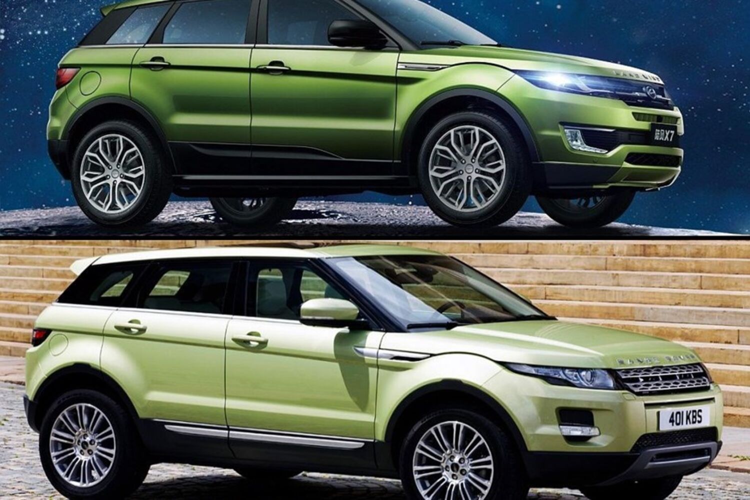 A Jaguar Land Rover pode fazer história, ao ser o primeiro grande construtor europeu (embora propriedade do grupo indiano Tata Motors) a colocar um processo judicial a um fabricante chinês por cópia de um dos seus modelos: em causa está o Landwind X7 que é, como as fotos facilmente o mostram, uma cópia descarada do Range Rover Evoque.Clique na imagem para saber mais.