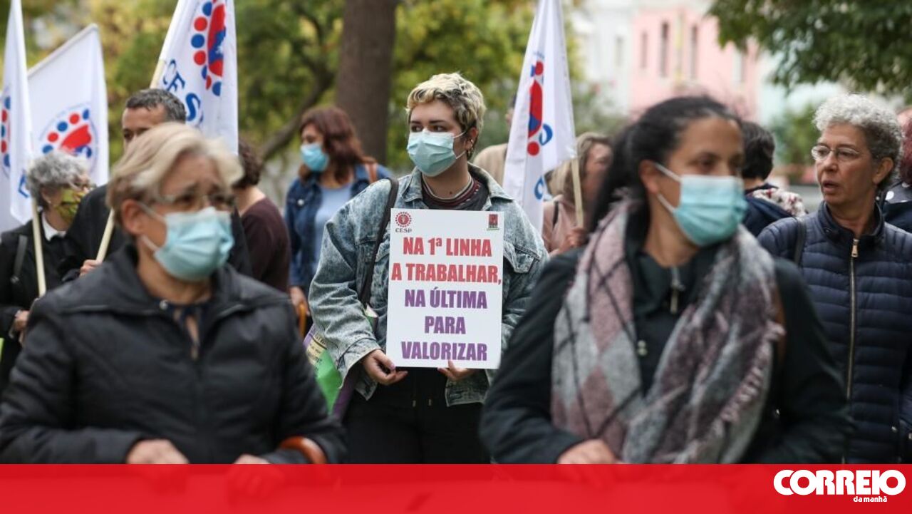 Meia centena de trabalhadores das misericórdias de todo o país concentraram-se, esta sexta-feira, junto ao Ministério do Trabalho, em Lisboa, para reivindicar aumento de salários, lamentando que os aplausos durante a pandemia tenham dado lugar ao esquecimento dos seus direitos.