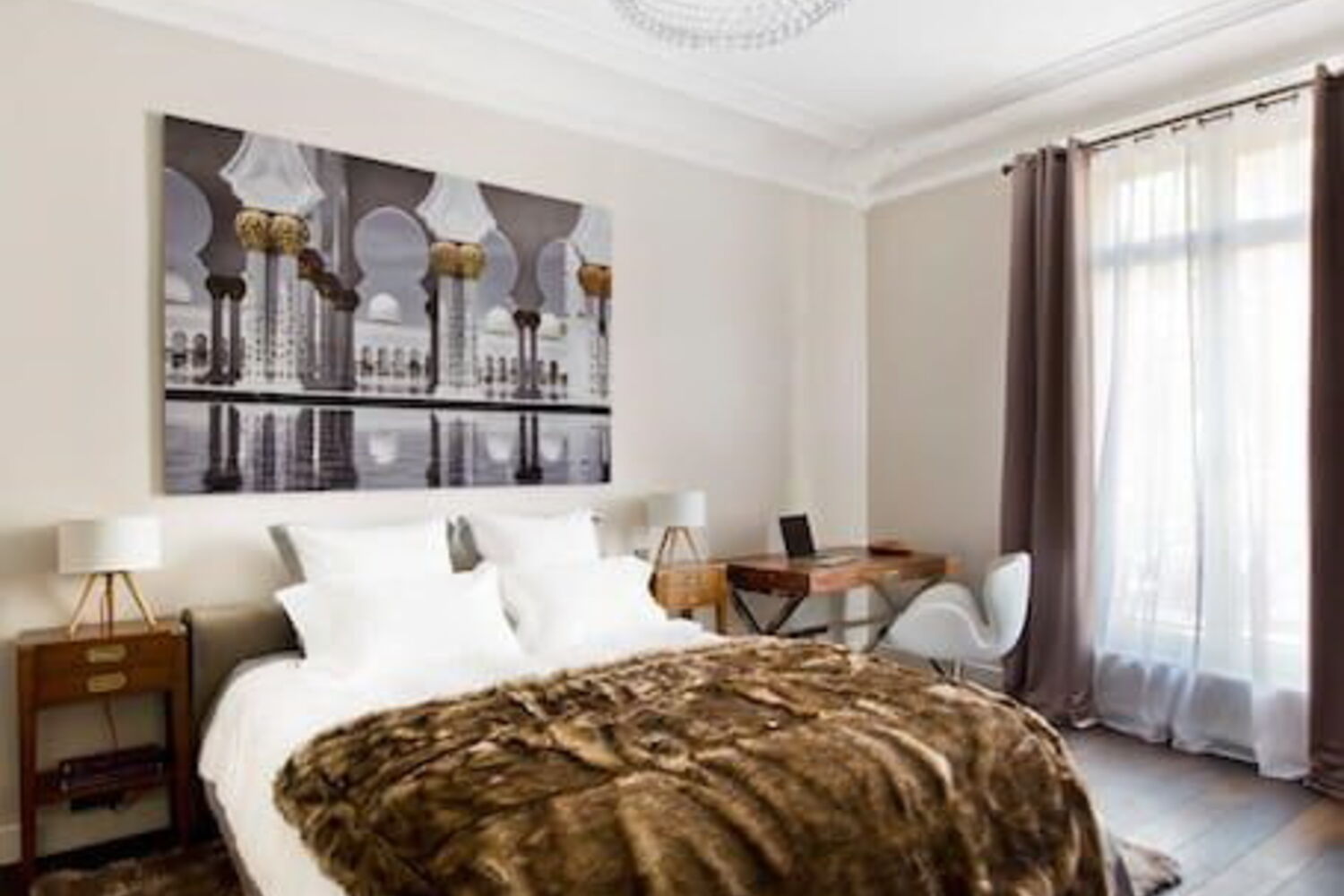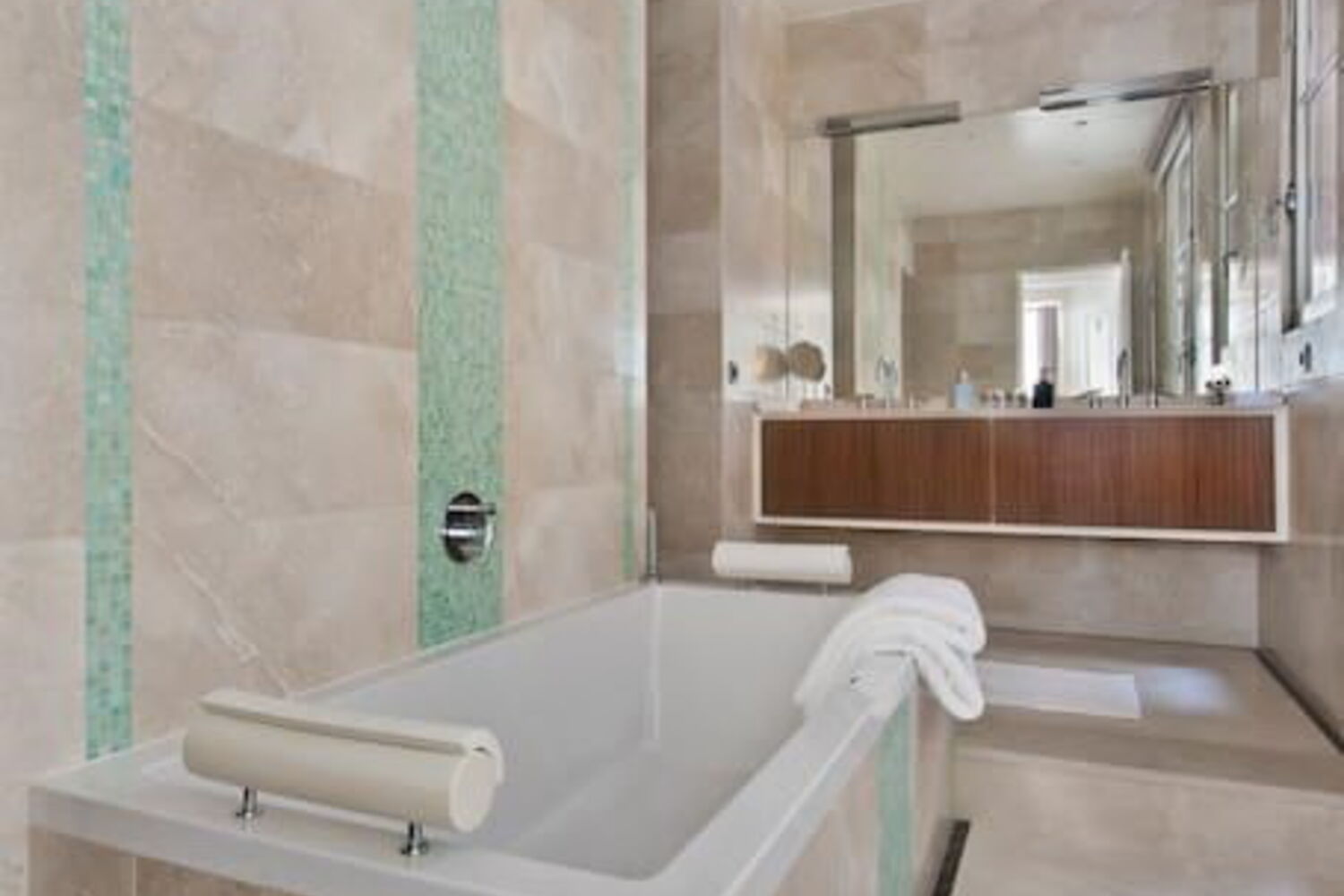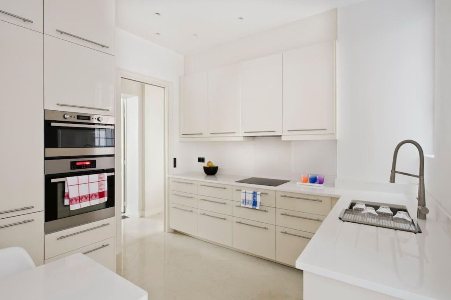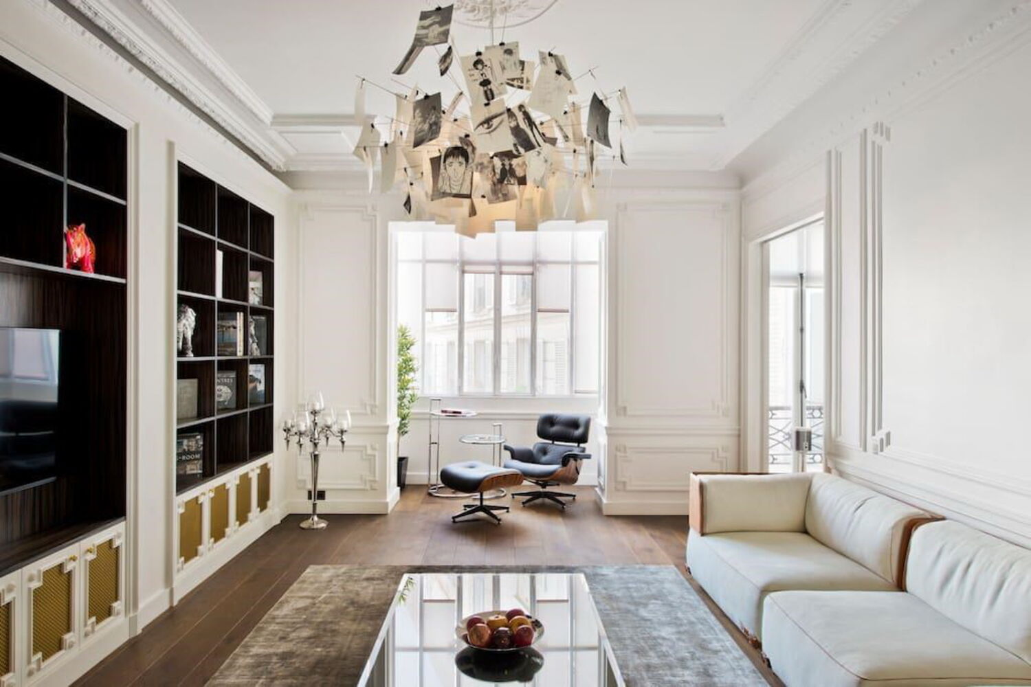 Mas assim que entramos no apartamento, são os elementos decorativos e o mobiliário caro que saltam à vista. O soalho é em pedra mármore em grande parte do apartamento.