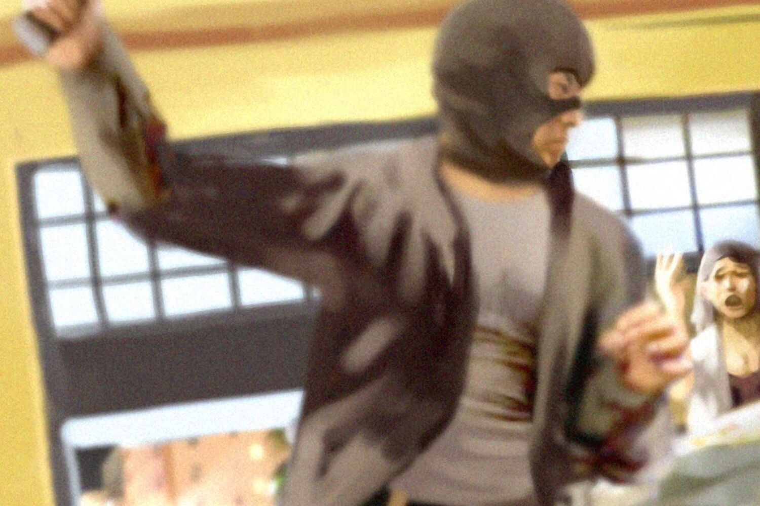 Pastelaria Madredeus vazia, dois funcionários já limpavam o estabelecimento depois do fecho, anteontem à noite, na rua Marquês de Olhão, Lisboa, a 100 metros da patrulha da PSP que guarda a casa do ex--Presidente Ramalho Eanes. Cara tapada, pistola em punho, um homem invadiu o café e, ao receber o dinheiro roubado, retribuiu com uma violenta coronhada na cabeça do empregado, levando--o a cair sobre a montra.