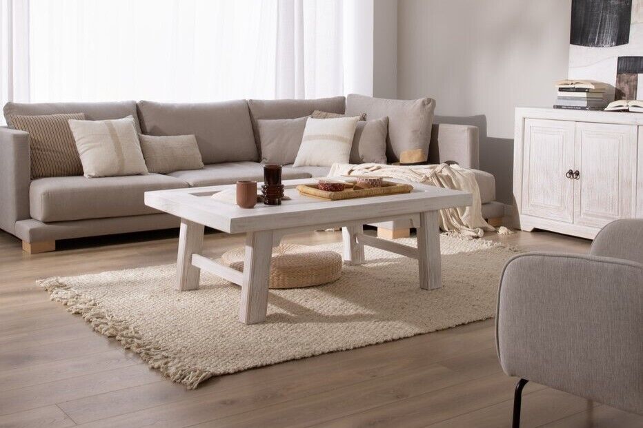 VER PREÇONa sala de estar, o equilíbrio entre funcionalidade e conforto ganha forma através de peças-chave bem escolhidas. A mesa de centro Bosto, com a sua mistura de madeira maciça e metal, é ideal para quem gosta de um toque contemporâneo sem abdicar da naturalidade. Por outro lado, a mesa Oblak, em madeira de araucária com acabamento branco shabby, oferece um charme mais romântico e luminoso, perfeito para ambientes leves e descontraídos. Depois, é só juntar mantas macias, almofadas em tons neutros e uma boa carpete de fibras naturais para criar aquele cenário onde ver uma série se torna quase um ritual sagrado.
