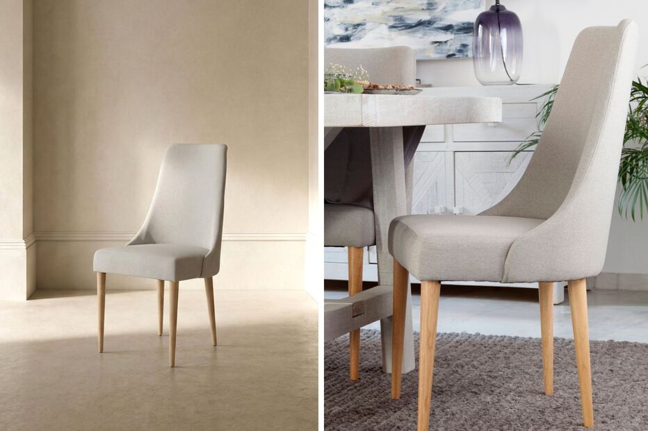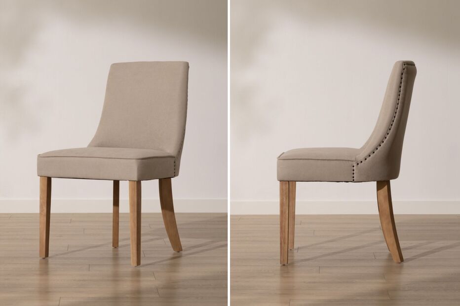 Giza - Cadeira estofada bege com madeira
