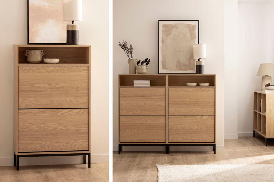 VER PREÇOPara quem vive a eterna luta contra sapatos espalhados pelo chão, a sapateira Remi, estreita e em madeira cor natural, é uma verdadeira aliada. O seu design compacto permite encaixá-la facilmente em corredores ou entradas mais pequenas, criando ordem imediata sem ocupar demasiado espaço.