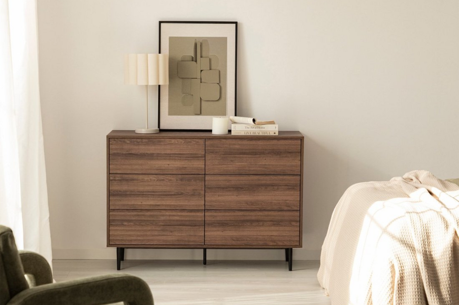Evoke - Cómoda de 6 gavetas em madeira cornogueira