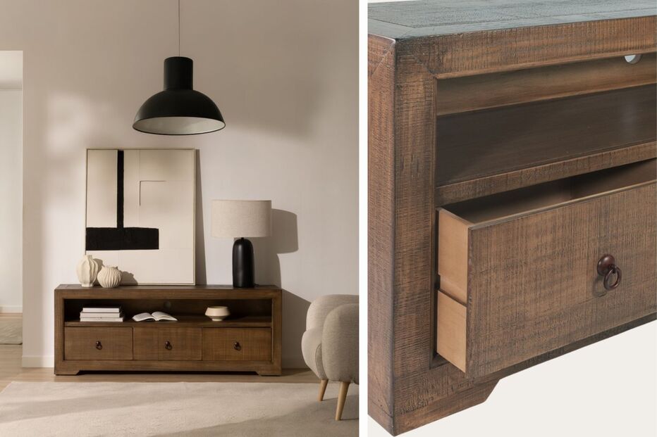 VER PREÇOOs móveis e mesas de TV em madeira maciça continuam a ser uma das escolhas mais procuradas, pela durabilidade, pelo caráter intemporal e pelo charme natural que trazem à decoração. Se a sua sala pede um ambiente mais rústico, contemporâneo, ou até vintage, o segredo está nos materiais, nos acabamentos e nos detalhes. É aqui que a Banak se destaca como um verdadeiro local de eleição para escolher este tipo de mobiliário. A marca aposta em madeiras nobres como mangueira e araucária, com designs exclusivos que combinam autenticidade, sustentabilidade e funcionalidade pensada para o dia a dia. Há ainda vários descontos em curso... nada como espreitar todo o catálogo da marca!