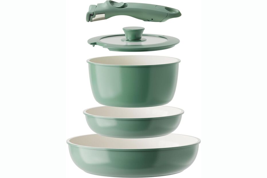 Também se depara com a confusão no local onde arruma tachos e panelas? Por vezes é difícil fazer aquele puzzle, por forma a deixar tudo bem acondicionado e a gerir o espaço disponível. O que este conjunto da Redchef faz é ajudar nessa epopeia, acrescentando mais benefícios aos cozinhados que com ele preparar. Inclui panela de 2,7 litros (20 cm), frigideira de 20 cm e panela de 26 cm com tampa de vidro e borda de silicone. A pega removível adapta-se a qualquer placa de cozinha, forno e mesa, sendo tudo o que precisa para cozinhar diariamente em qualquer fogão.