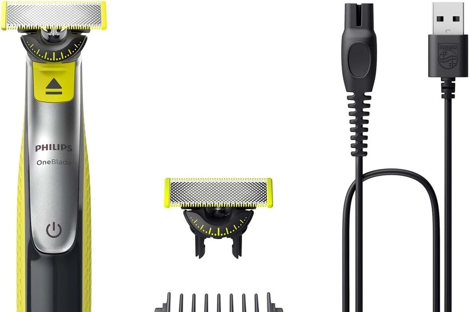 Barbeado com completo ou barba aparada... com a Philips One Blade tudo é possível. É eficaz mesmo nos pelos mais compridos. Este kit é composto pela máquina Philips OneBlade 360 Face, pente ajustável 5 em 1 (1-5 mm), duas lâminas 360, uma tampa protetora e um cabo de carregamento.