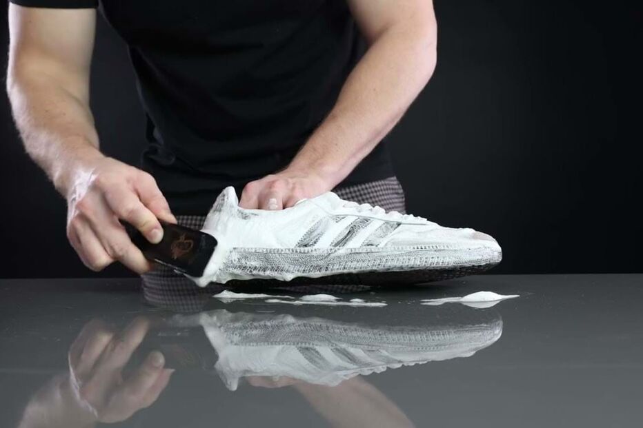 3º - esfregar o calçado (fará uma espuma abundante) nas zonas a limpar