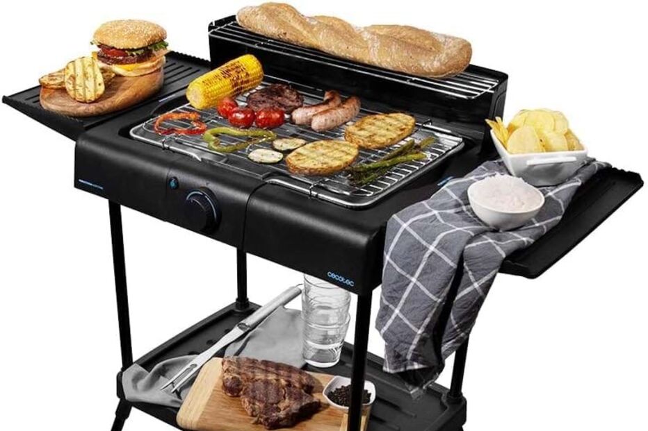 Este churrasco elétrico tem a vantagem ter um móvel de suporte ideal para os utensílios e ir repousando os alimentos, incluindo duas abas laterais para aumentar a área de trabalho. A grelha em aço inoxidável tem 2400 W de potência e há ainda um painel corta-vento para facilitar o uso no exterior. O indicador luminoso de ligar e desligar e o interruptor de segurança que evita o funcionamento se o churrasco não estiver bem montado são dois dos elementos de segurança deste modelo.