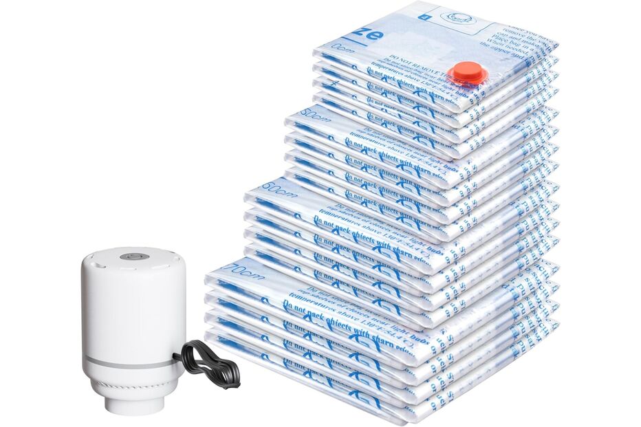 VER PREÇOO segredo da vedação está na válvula tripla e na tampa de borracha, que impedem qualquer fuga de ar. Assim, as roupas permanecem impecáveis até ao próximo verão, sem odores nem vincos excessivos. Além de organizar armários, os sacos são ideais para malas de viagem ou para quem tem pouco espaço em casa.