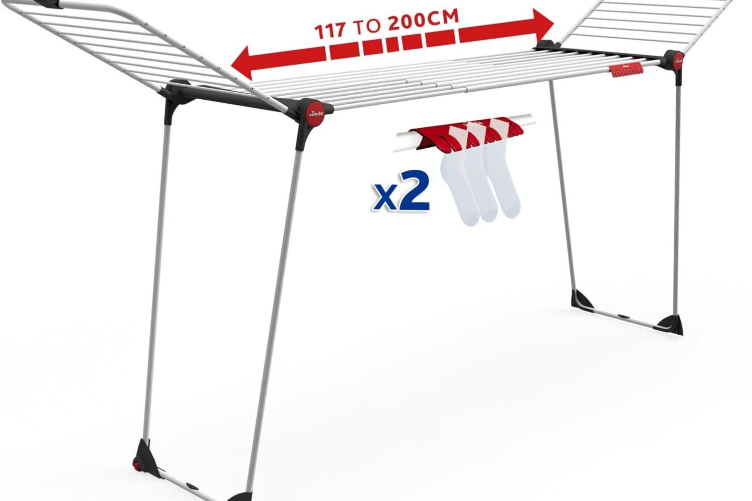 Ver PreçoÉ a nova coqueluche nos estendais para interior. Porquê? O nome já diz tudo: é infinito (ou quase). Com guias telescópicas extensíveis, este modelo adapta-se facilmente a lençóis, toalhas grandes e roupas de família numerosa. Apesar do tamanho, é leve, fácil de mover e dobrar, o que o torna ideal para quem precisa de muito espaço de secagem... quando totalmente aberto é como se tivesse 30 metros de corda para estender.