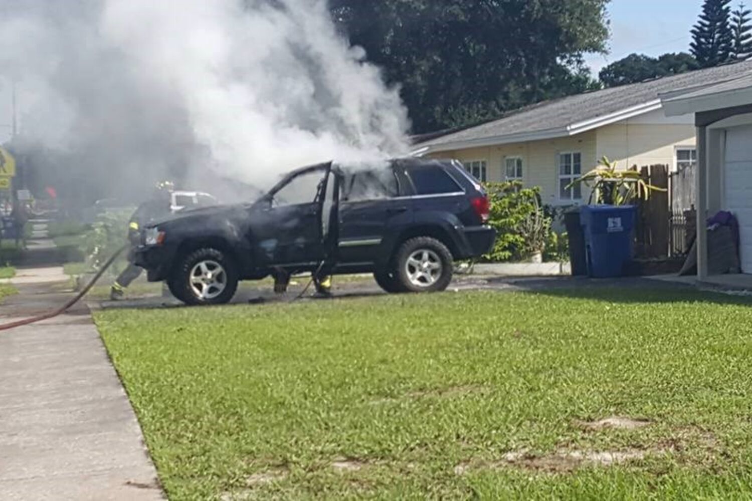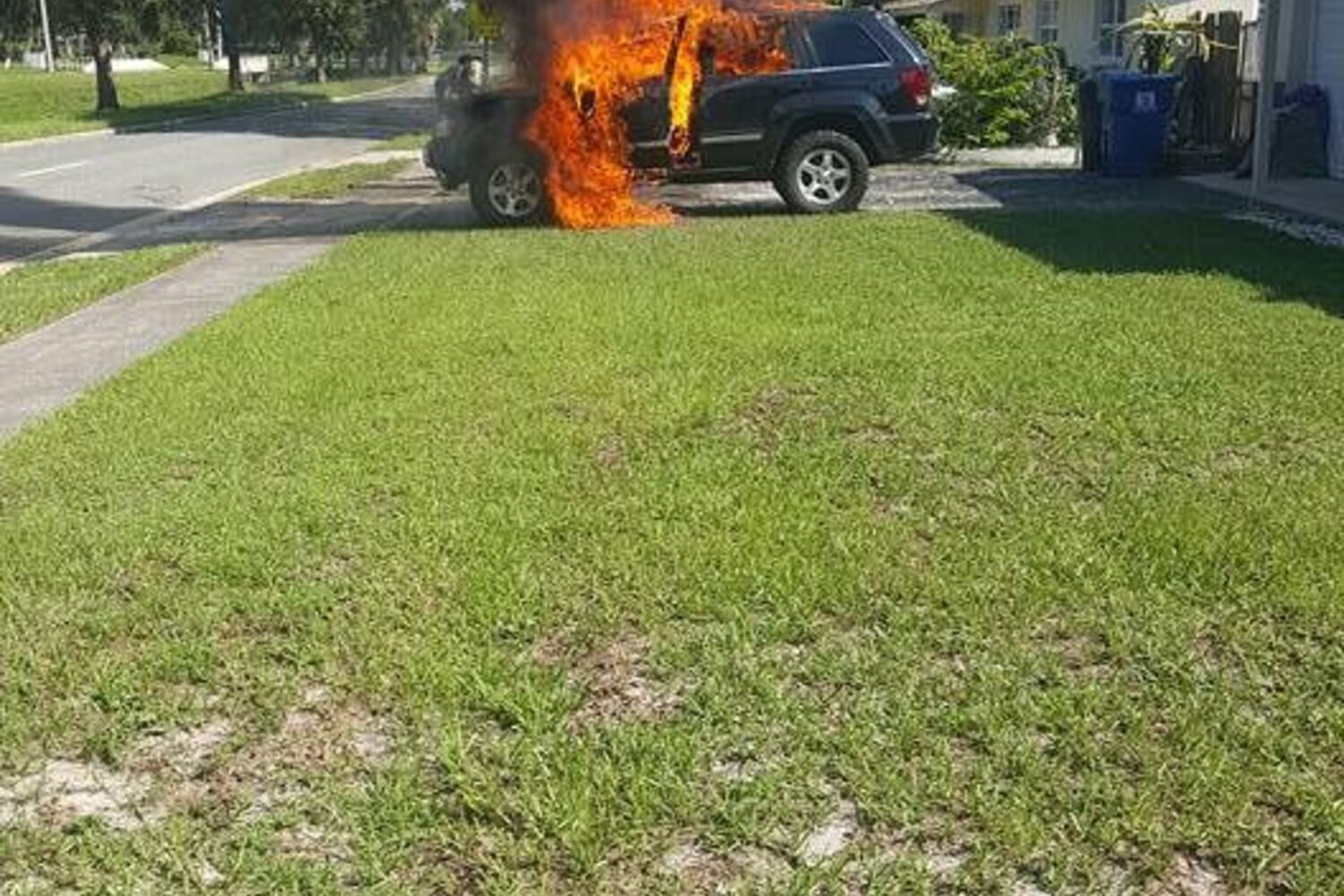 O Jeep Grand Cherokee ficou envolto numa bola de chamas e, de acordo com as fotos partilhadas por Dornacher na rede social Facebook, o veículo terá ficado completamente inutilizado.
