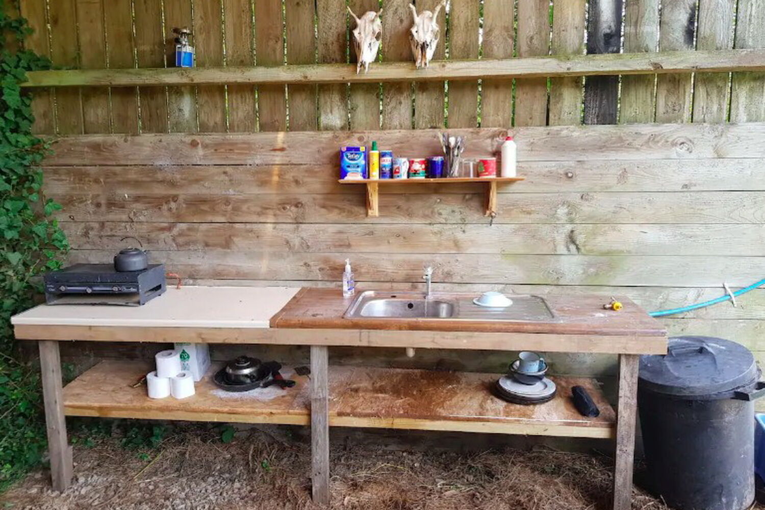 As famílias que escolhem este local para férias podem ter garantia de viverem uma experiência, no mínimo, insólita: o barracão está decorado com sofás velhos e gastos, a mesa de jantar e as cadeiras são restos de obras e entulho, fardos de palha servem como divisórias da zona, a casa de banho é ao ar livre e a cozinha é minimalista (adivinhou, também ao ar livre) e está decorada com ossadas de carneiro.