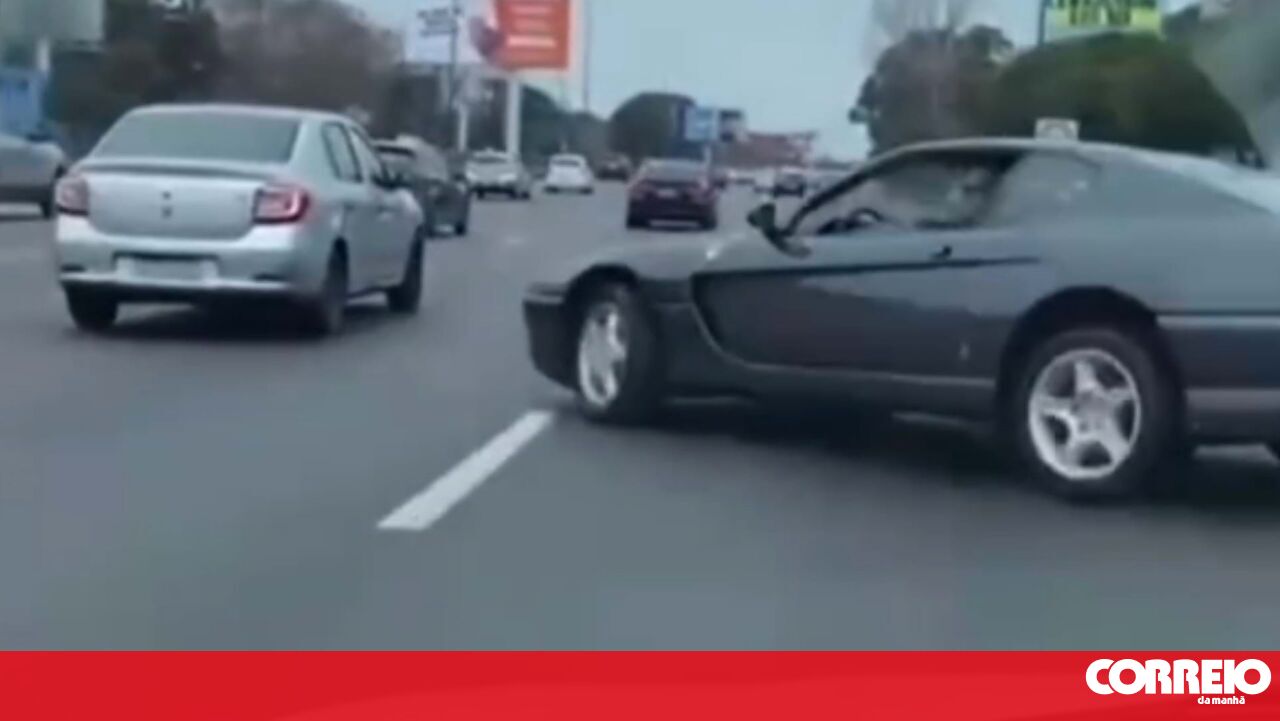Condutor de Ferrari faz pião entre carros em plena auto-estrada