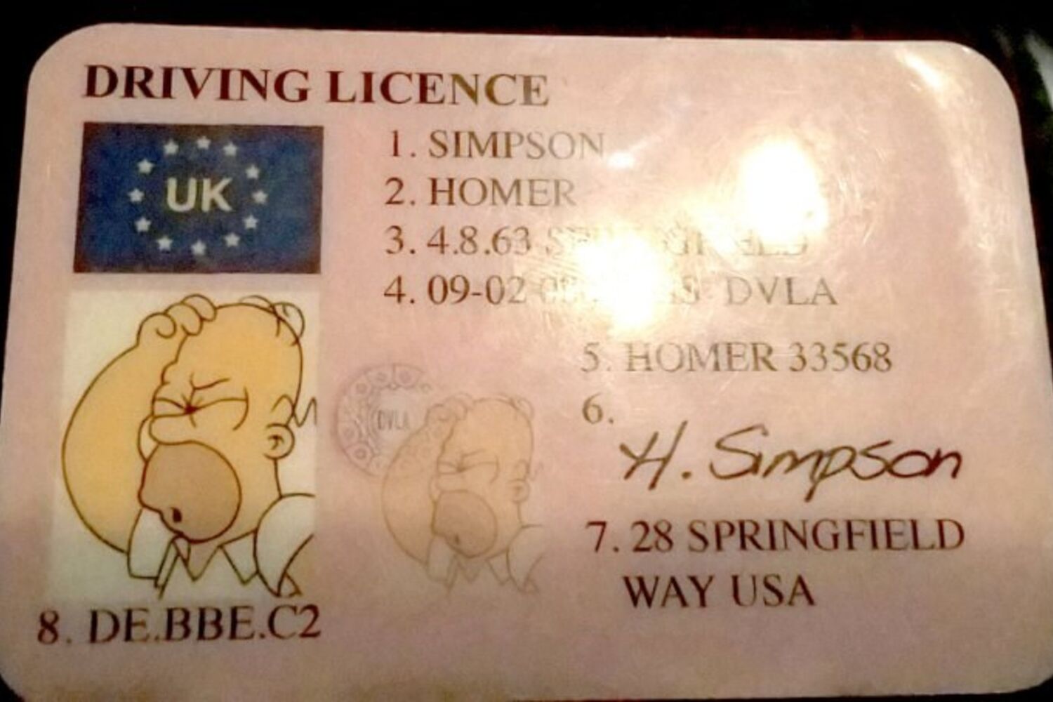 Muitos internautas comentam ainda que esta falsificação vai ainda mais longe e comparam-na a uma imagem da ‘verdadeira’ carta de condução de Homer Simpson, que revela a morada certa e data de nascimento correta da personagem.