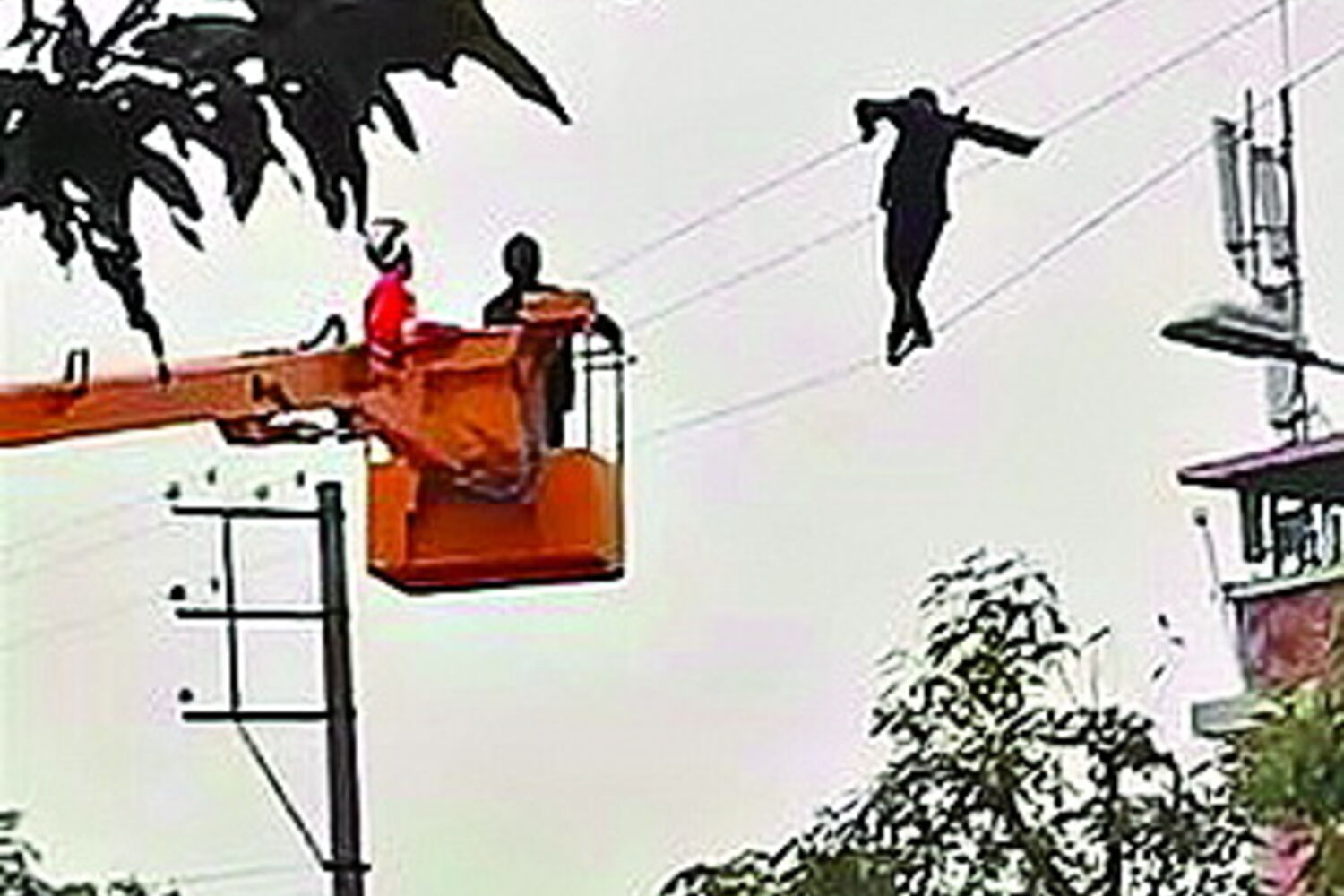 Apesar da bebedeira, o homem trepou quase dez metros e passeou nos cabos elétricos.