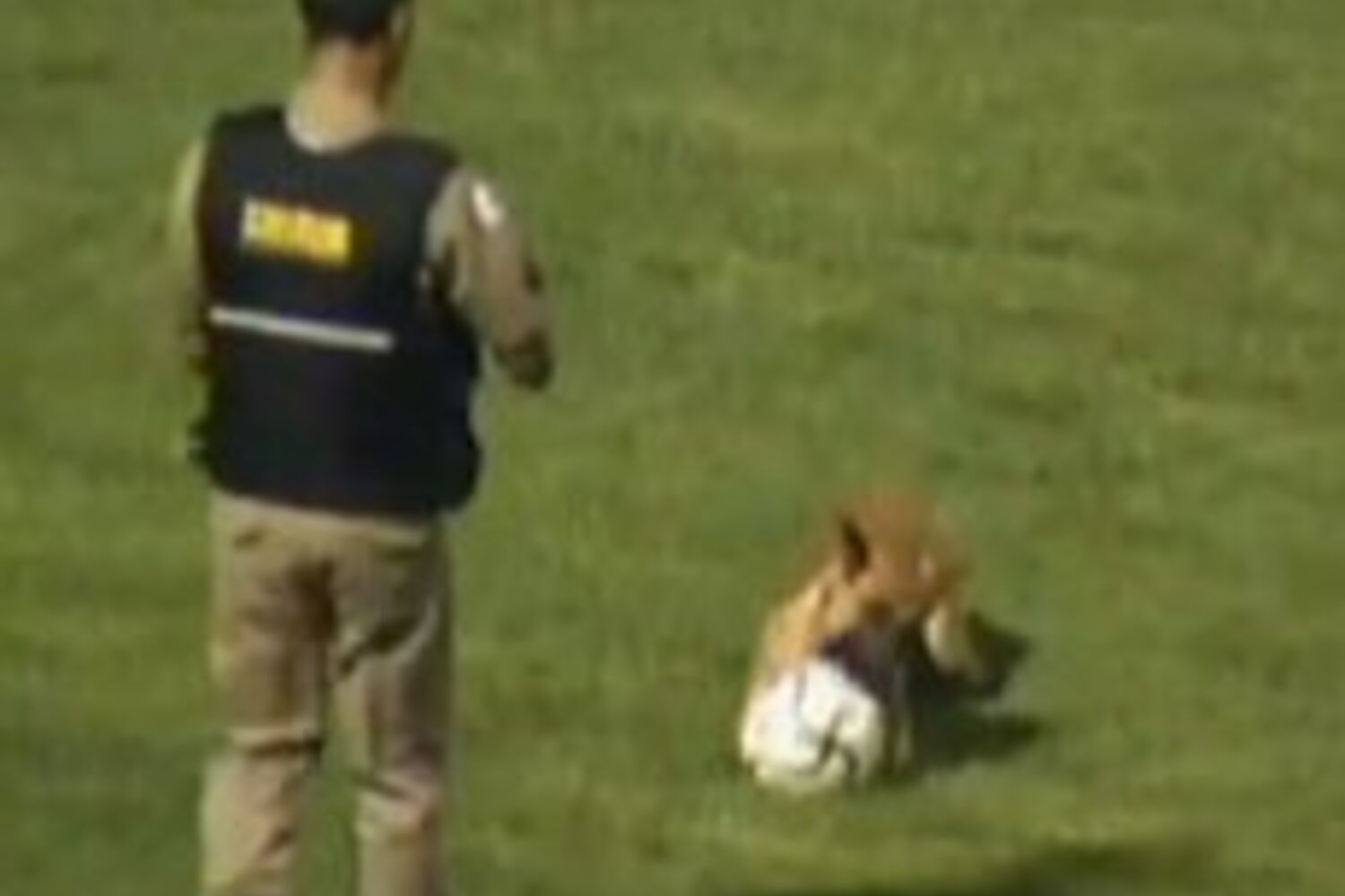 "Ela ficou atraída pela bola e conseguiu escapar quando a trela se partiu. Mas foi fácil tirá-la do campo e voltar a colocar uma trela sem problemas", afirmou Orivaldo Lombardi, militar responsável pela cadela, aos meios de comunicação locais.