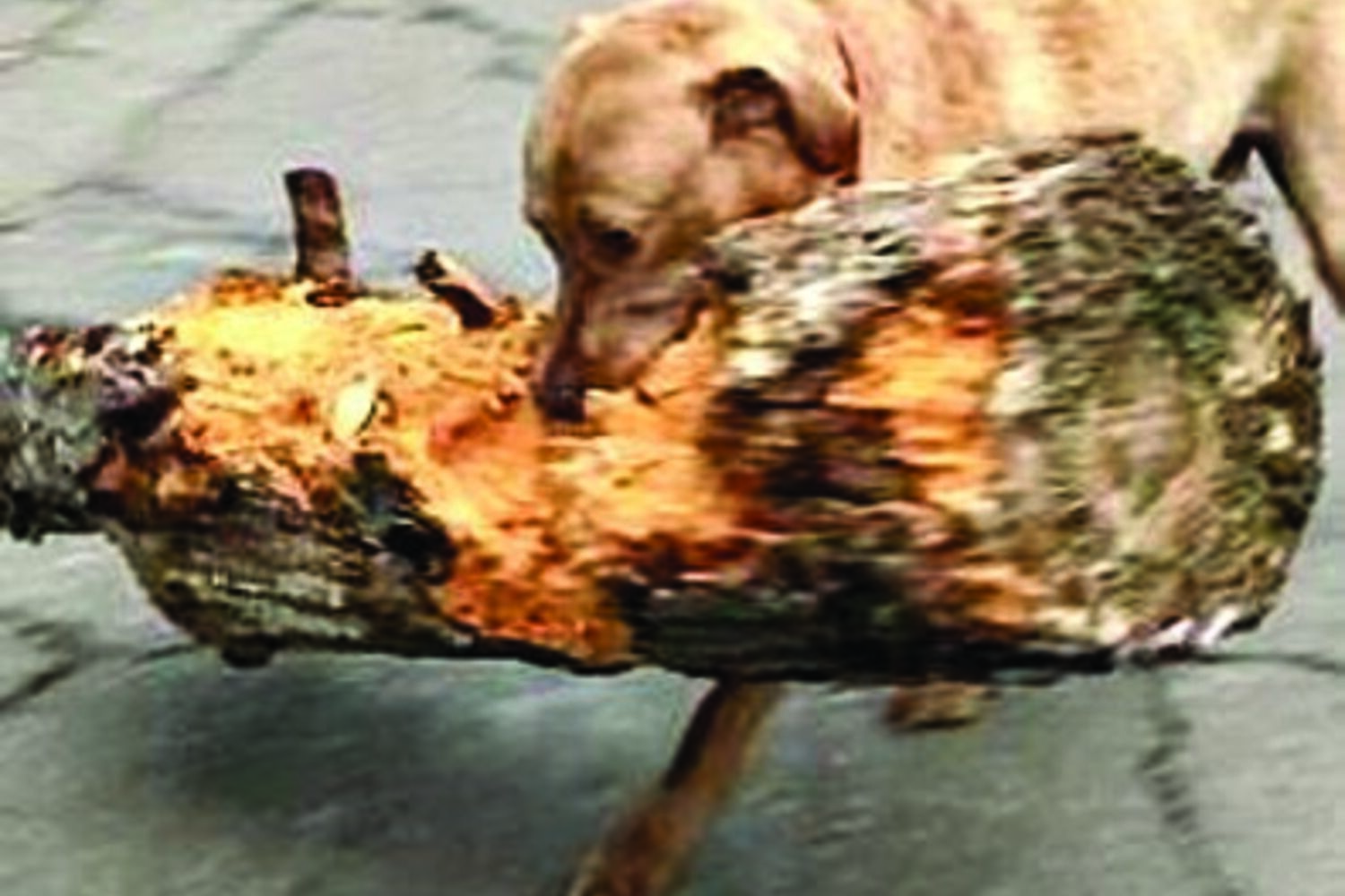 Foi o que começou por acontecer neste passeio mas, a dada altura, avistou outro ‘ramo’ que lhe atraiu a atenção e não hesitou em trocar o pau que trazia na boca por... um pesado pedaço de tronco de árvore, perante o riso estupefacto do dono.
