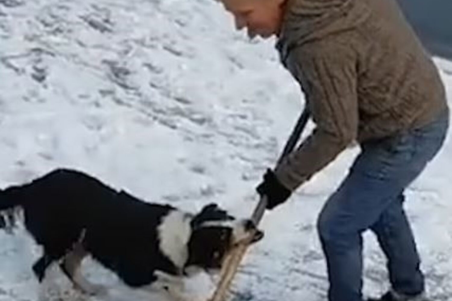 Para um cão, um cabo de uma vassoura ou de uma pá não passa de um pau gigante e, como tal, um potencial objeto de brincadeira. Que o diga o dono deste border collie, que tentava limpar a neve da entrada do seu pub, em Inglaterra, quando o cão decidiu roubar-lhe a pá. Como se não bastasse, ainda fez o dono escorregar e cair no chão gelado...