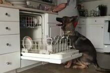 Paciente, a criança explica ao cão ciumento, ‘Sebastian’, que a presença do outro é temporária e que agora ele até tem companhia para brincar...