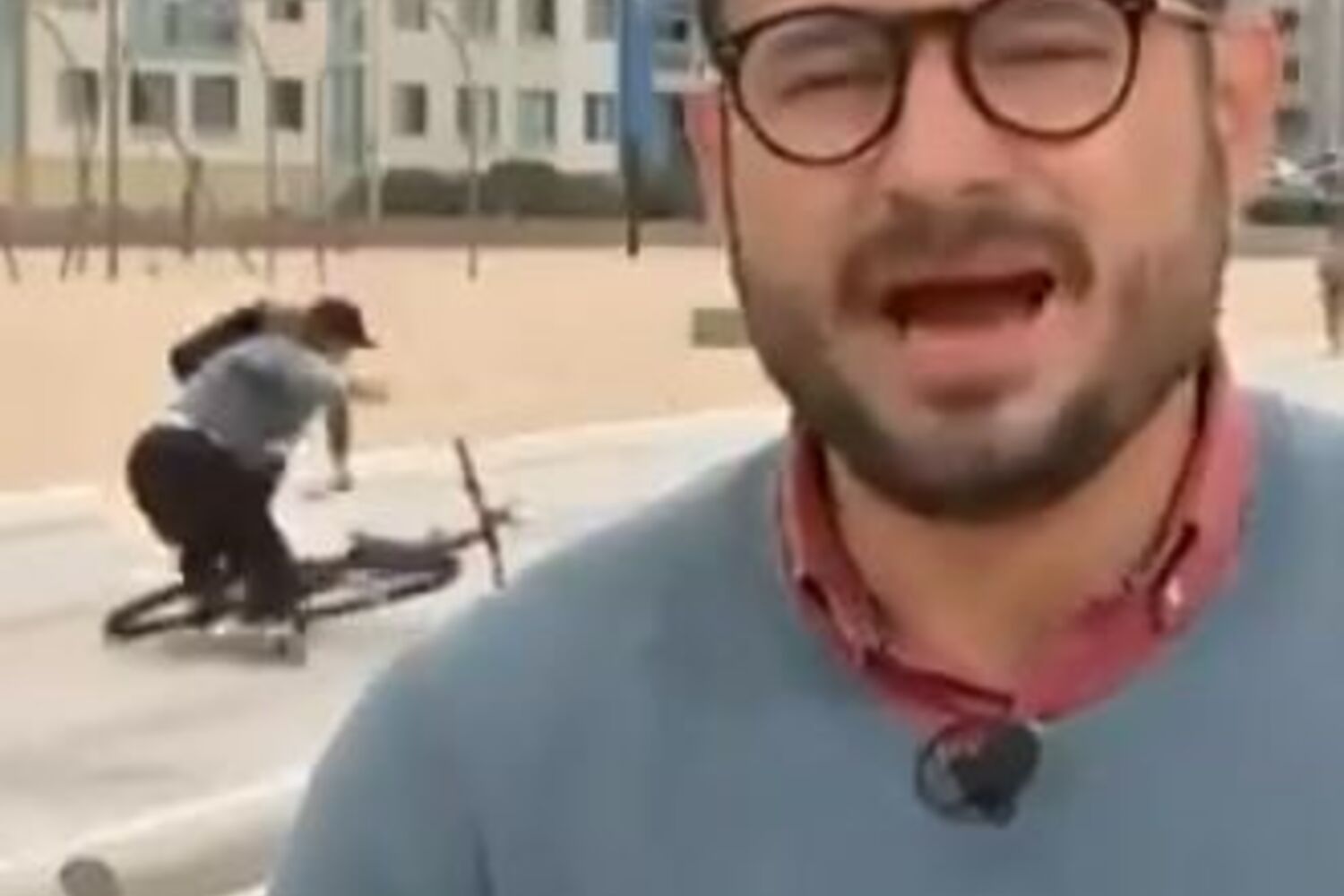 Já se sabe que as pessoas que aparecem em fundo durante as reportagens em direto na TV têm tendência para se fazerem notadas.Já uma ciclista da Califórnia decidiu imortalizar os seus 15 segundos de fama com uma selfie, mas acabou por estatelar-se... em direto para todo o país.