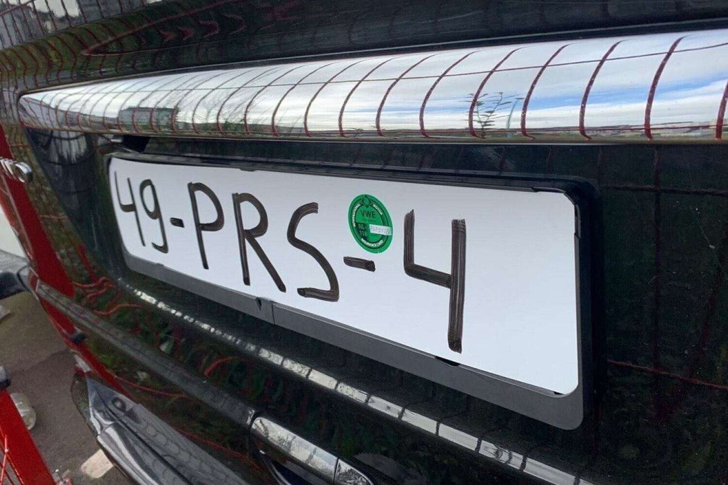 O insólito da situação? A matrícula era uma simples placa de plástica com os números e as letras pintados à mão com um marcador de tinta permanente.