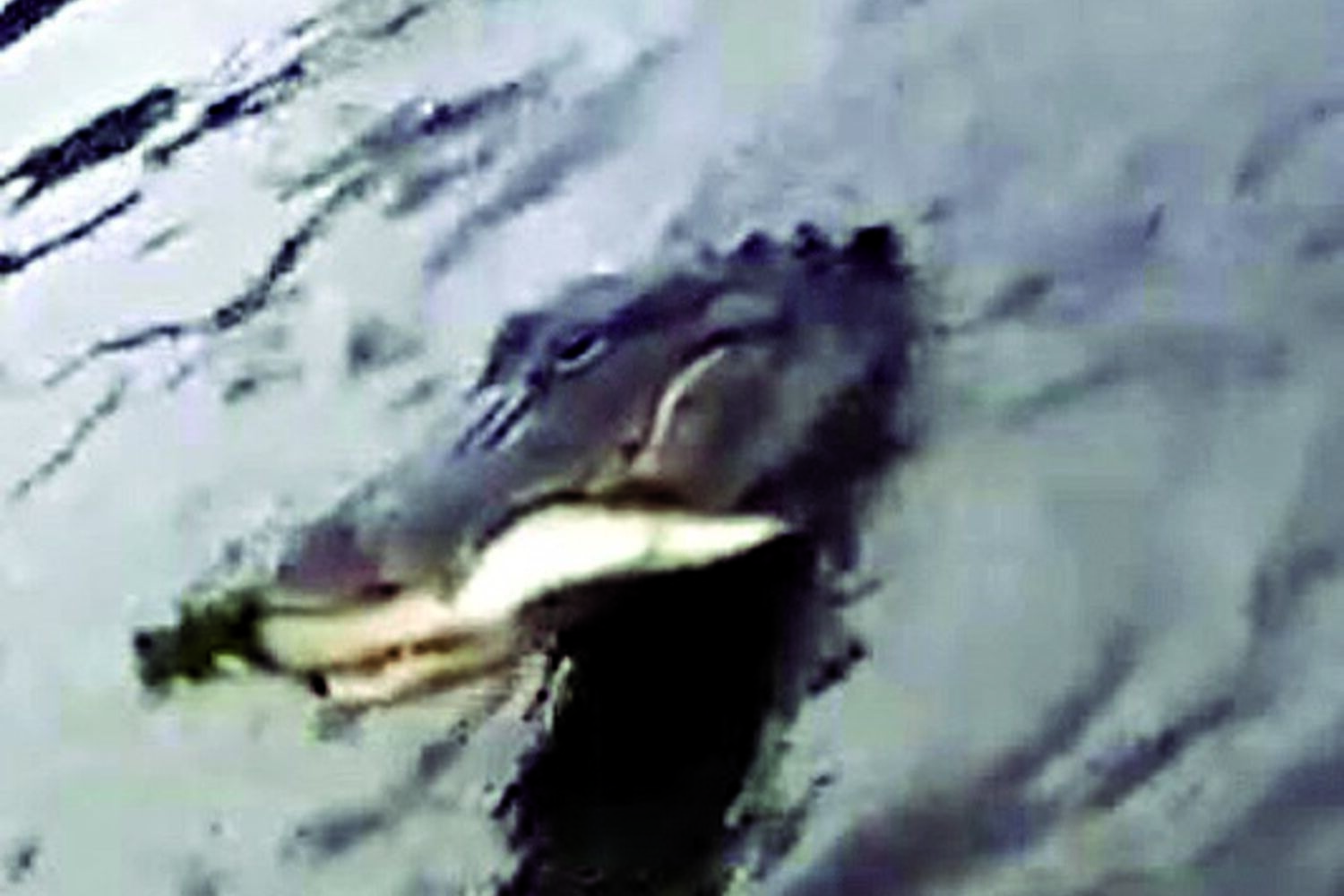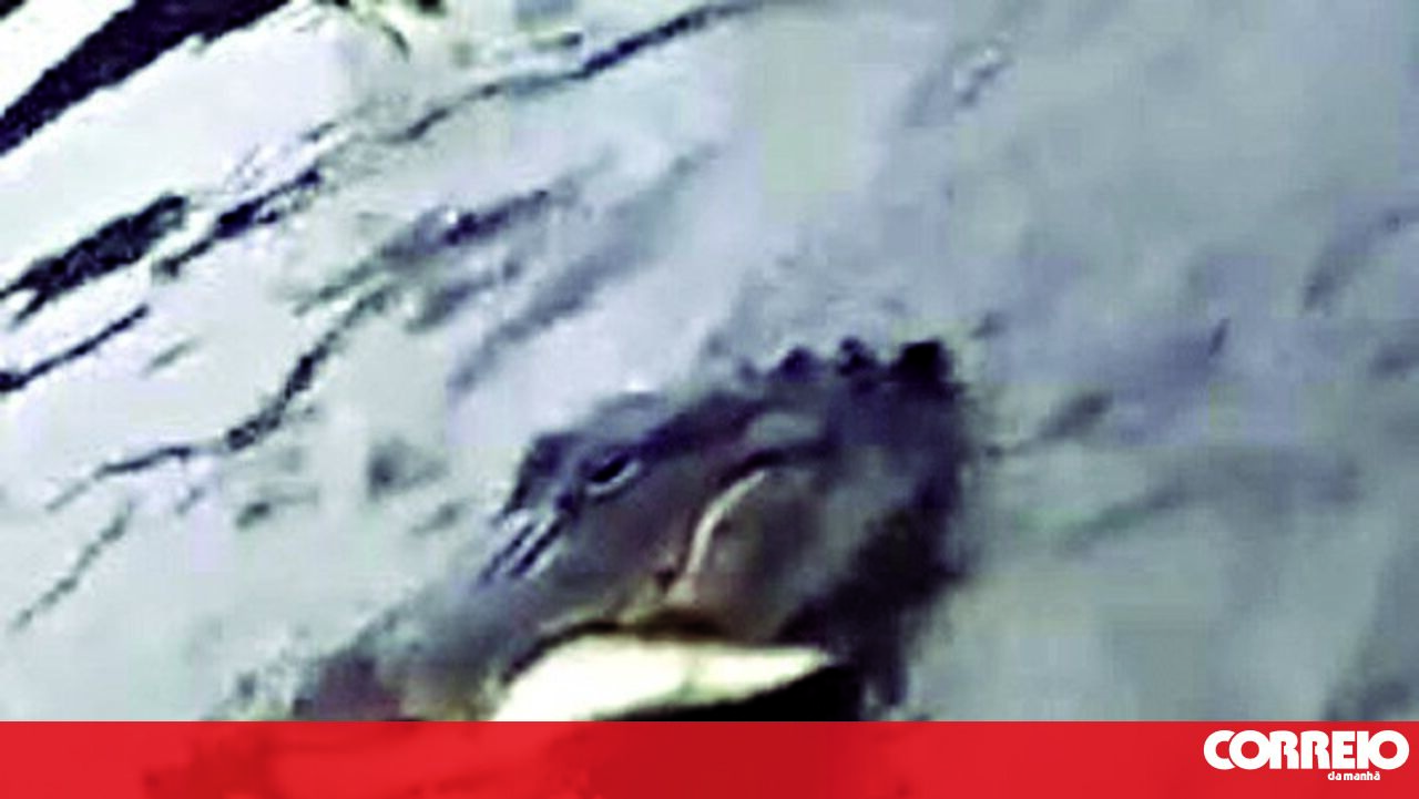 Num ápice, um enorme crocodilo veio à superfície e abocanhou o peixe, ainda preso à linha.