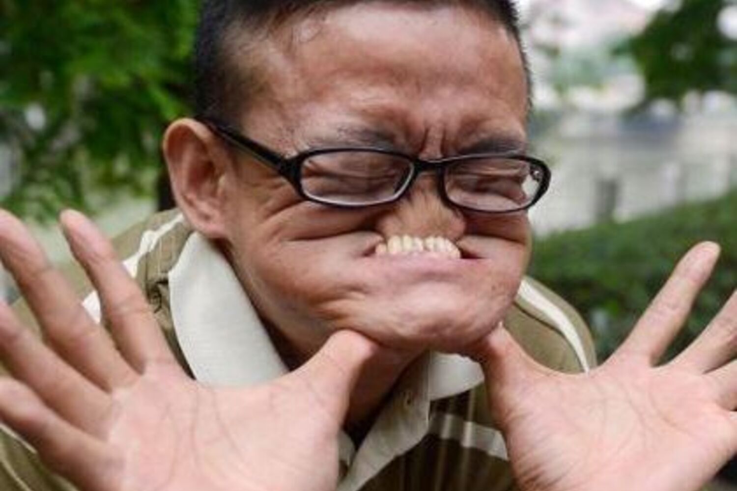 Há anos que o chinês Tang Shuquan se dedica a contorcer a cara de formas bizarras. E o esforço por um rosto deformado valeu-lhe uma medalha do Guinness e ainda oito mil euros. Shuquan, de 43 anos, consegue esticar tanto os músculos faciais que faz desaparecer a boca e o nariz.
