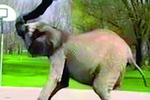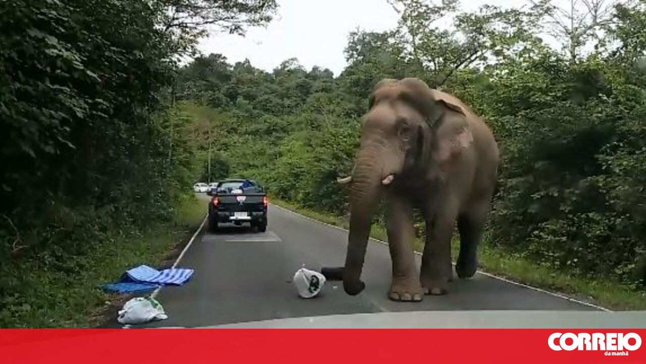 Numa delas apanhou uma garrafa de água, que cuspiu de seguida, e acabou por levar um pacote de arroz cru, talvez apenas para não ir de... tromba a abanar.