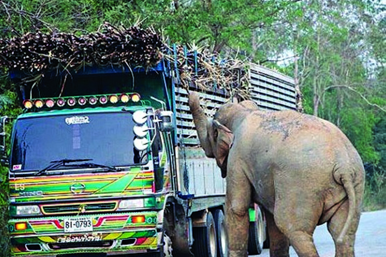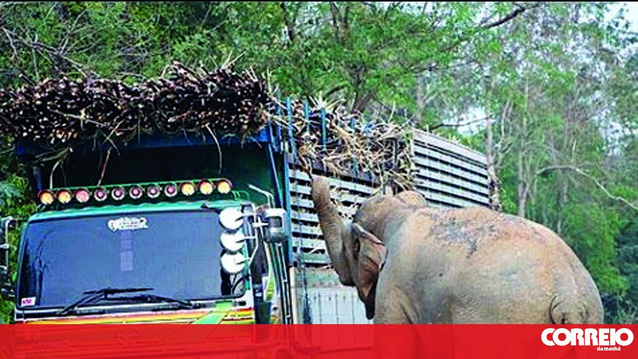 Um elefante guloso provocou uma grande confusão numa estrada da Tailândia ao fazer parar o trânsito para ‘inspecionar’ camiões em busca de cana de açúcar.