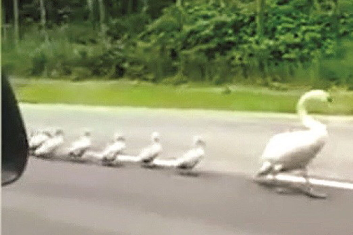 Todos sabem que as crias de cisnes são inseparáveis dos progenitores e seguem-nos para todo o lado... todo o lado mesmo, até numa autoestrada!