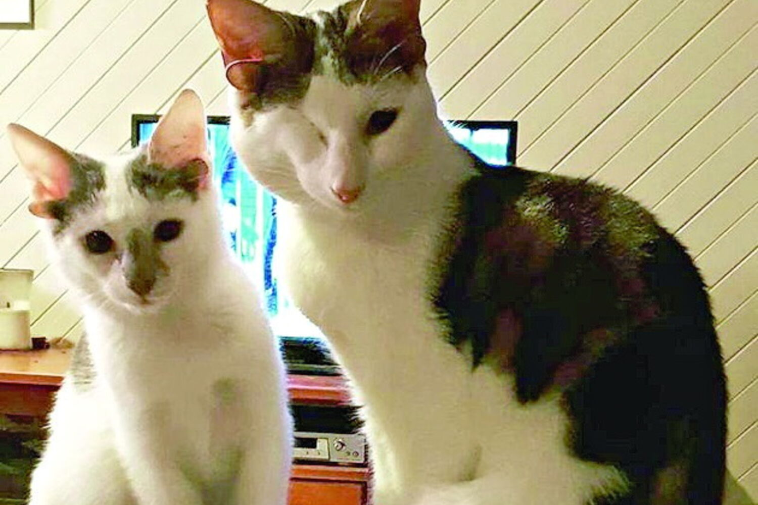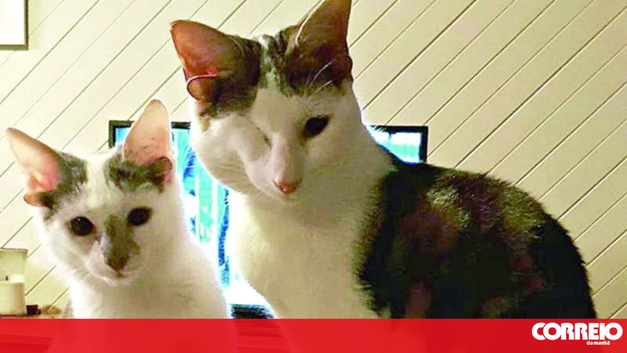Uns meses depois, o felino conheceu o irmão mais novo que, como ele, também tem dois pares de orelhas.