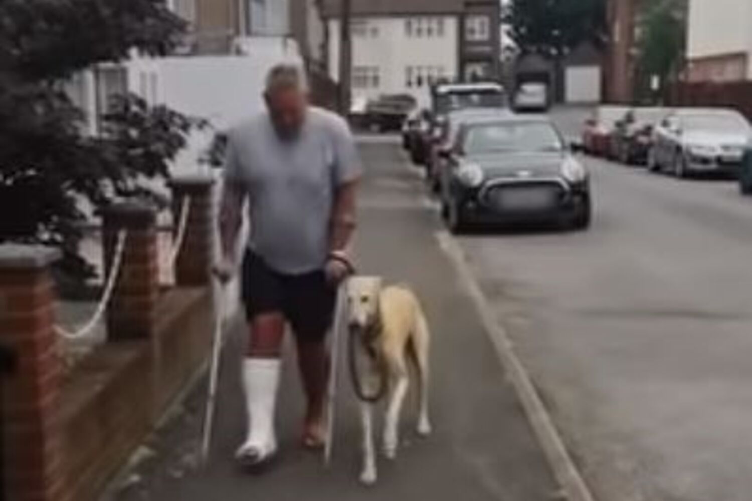 Segundo conta Russel, o cão coxeava apenas por "simpatia", imitando o dono, que se encontra neste momento a andar de muletas.