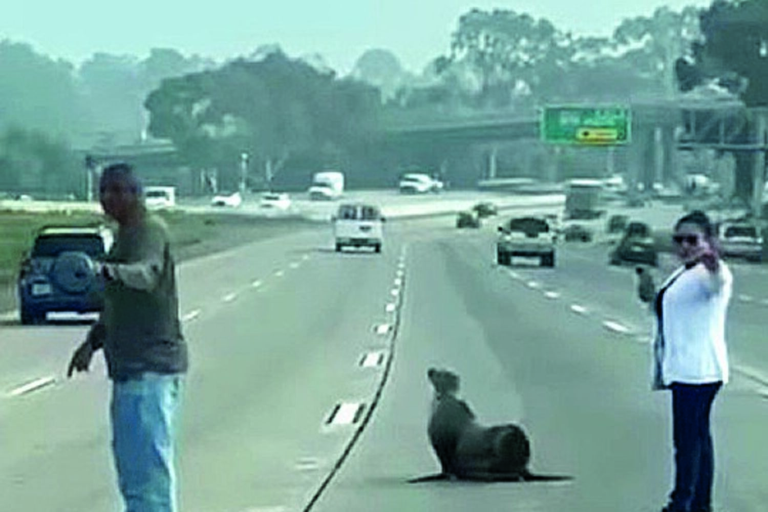 Não é todos os dias que se vê um leão-marinho numa estrada, especialmente quando o mar está a muitos km de distância. Mas foi isso que condutores perplexos testemunharam junto a San Diego, Califórnia.