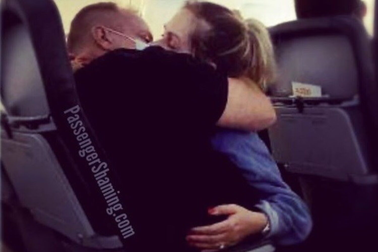 Os passageiros ficaram surpresos com o intenso beijo "mascarado" entre os dois namorados em férias e fotografaram-no de imediato para depois publicarem no Passenger Shaming do Instagram.