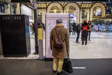Ao fim de 40 dias de greve geral nos transportes públicos em protesto contra a reforma das pensões, vale tudo para conseguir um lugar sentado nos poucos comboios que ainda circulam, e este homem não hesitou em furar a fila para passar à frente da concorrência.