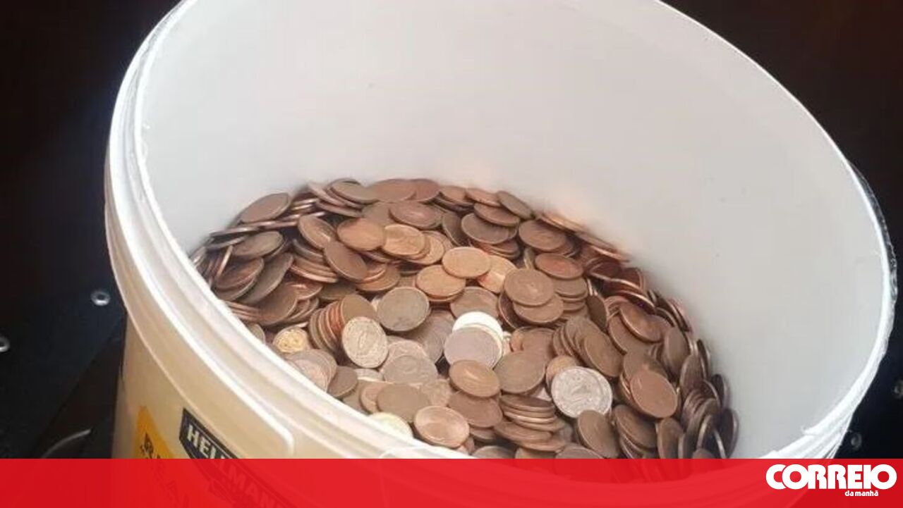 Balde tinha 30 quilos de moedas de cinco cêntimos.