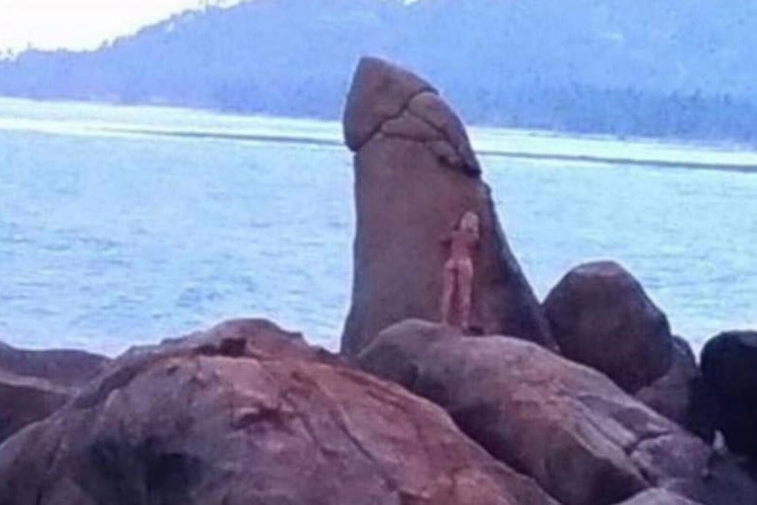 Jovem foi fotografada a esfregar-se nua contra a pedra.