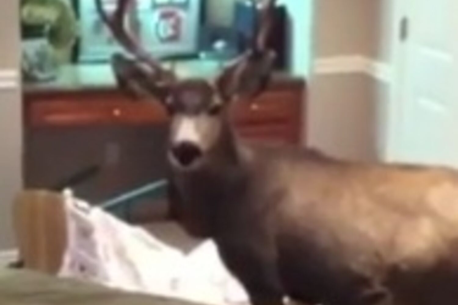 Uma família norte-americana, residente em Bountiful, no estado norte-americano do Utah, não quis acreditar quando percebeu que tinha um veado a andar pela residência, no andar de baixo.
