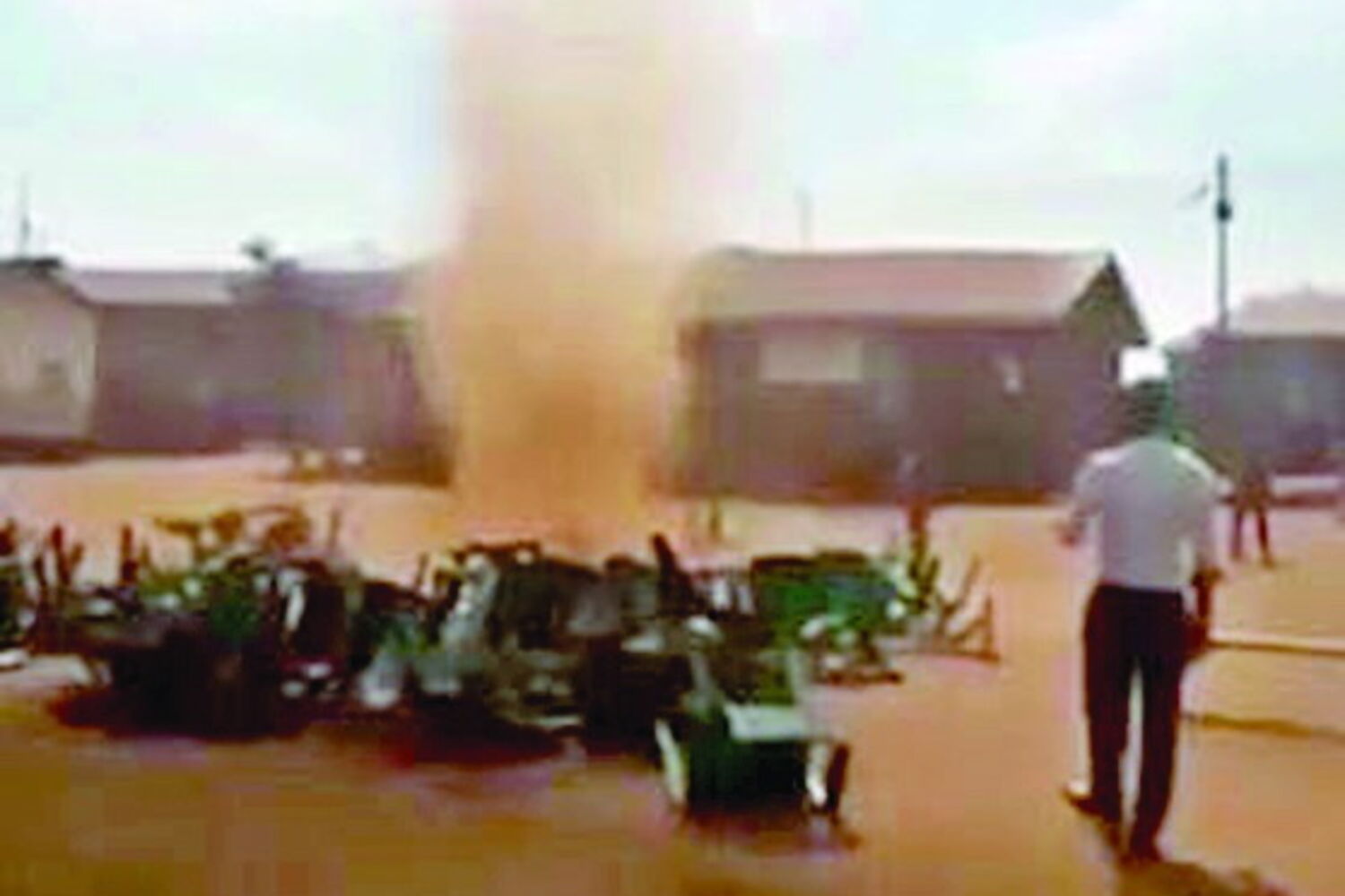 Uma cerimónia religiosa numa aldeia do Quénia foi interrompida por um assustador minitornado, que arrastou cadeiras e semeou o pânico na pequena congregação.