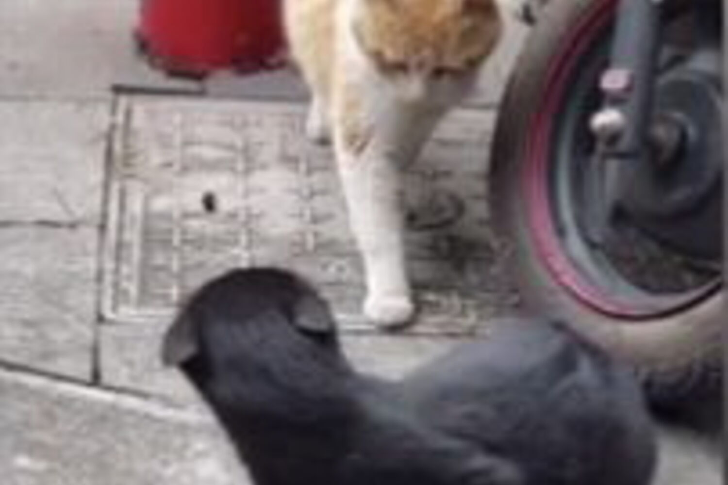 Um vídeo filmado na China parece ilustrar um triângulo amoroso... felino.
