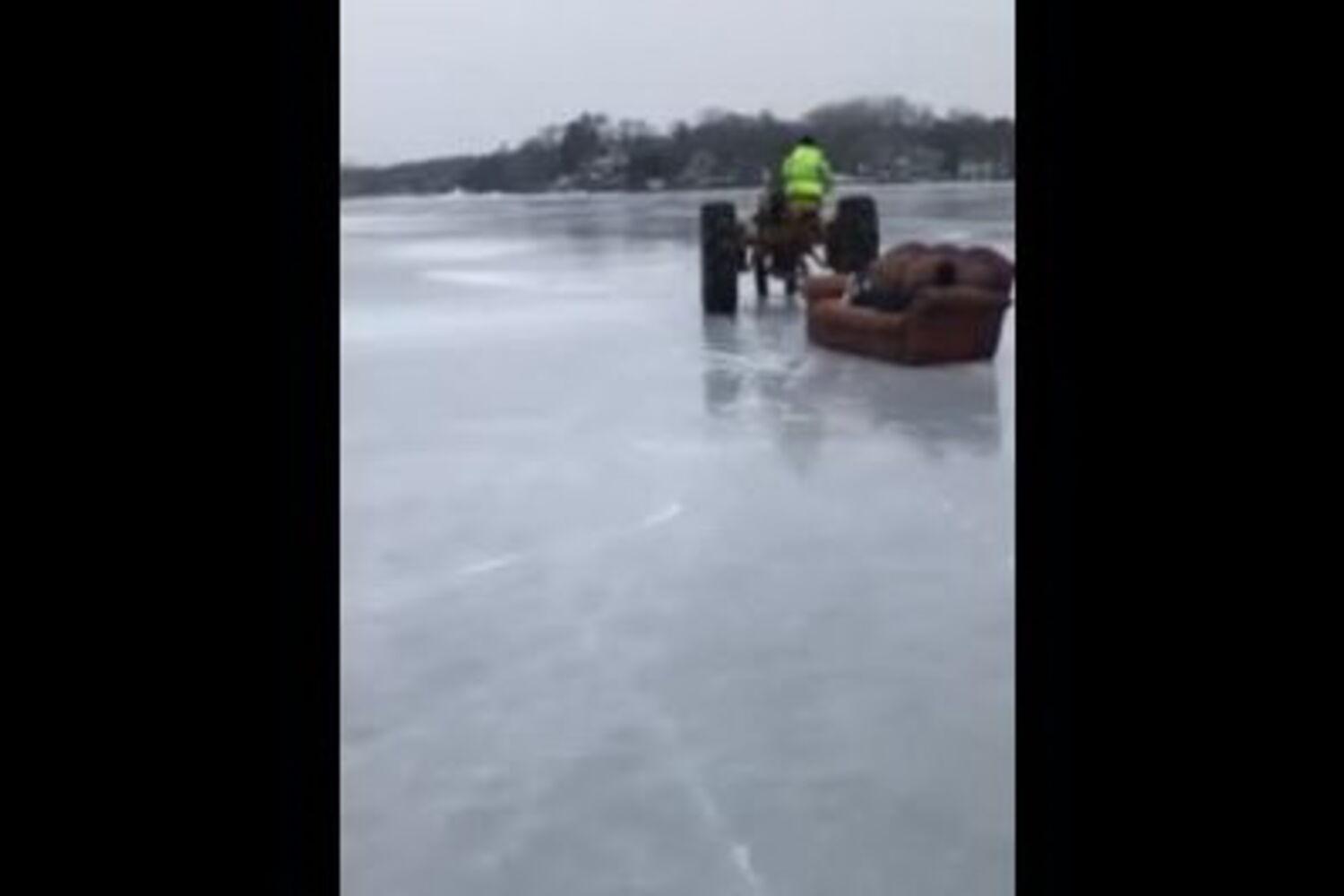 Qualquer das hipóteses vale para explicar as imagens captadas por um grupo de amigos do Minnesota (EUA), que decidiram viajar de sofá... num lago gelado.