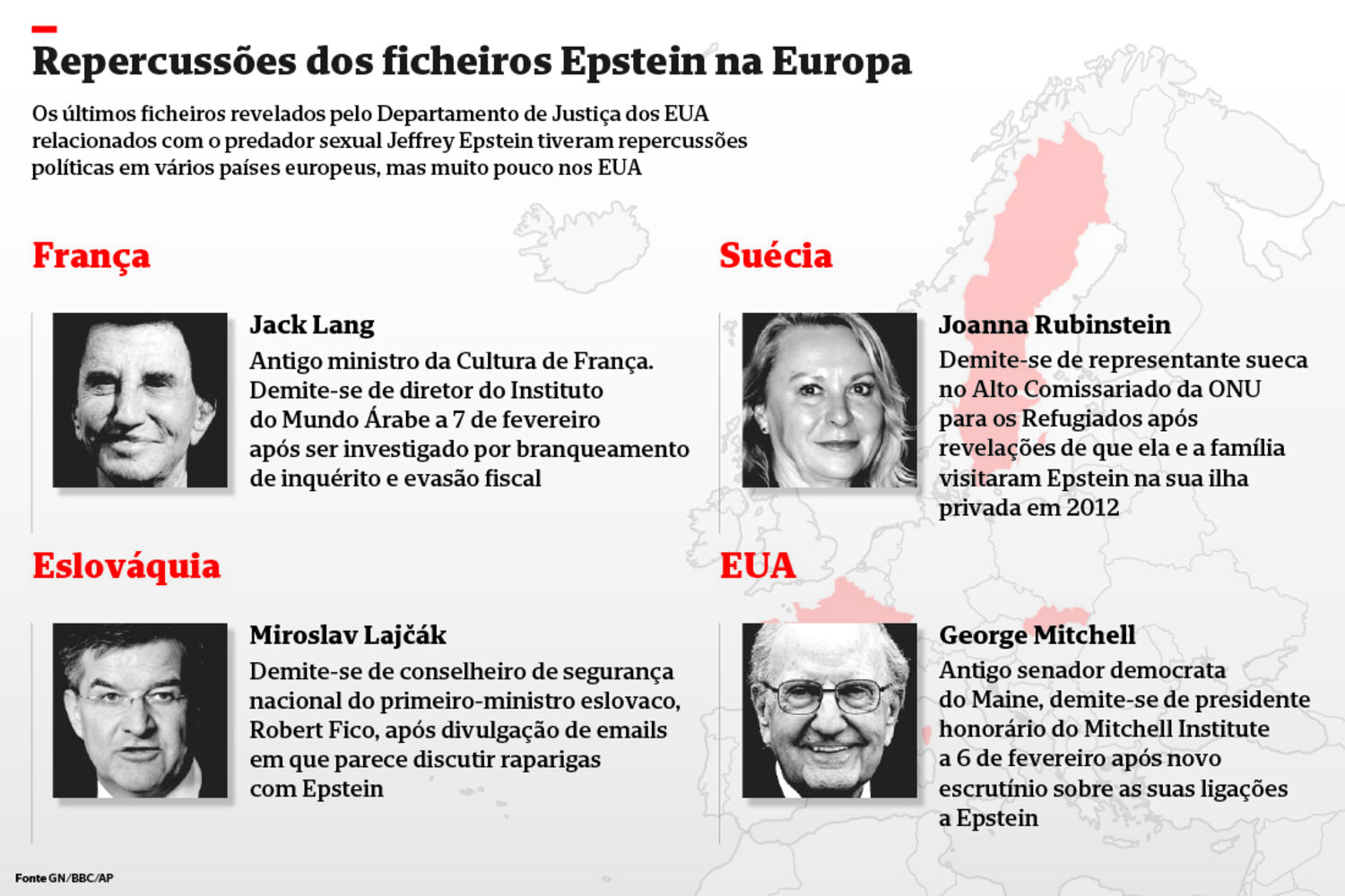 Trump nega qualquer irregularidade em relação a Epstein. Em comunicado, a Casa Branca classificou as alegações como “falsas e sensacionalistas”. Também o DOJ - que é liderado por Pam Bondi, fiel seguidora do Presi- dente republicano - negou que qualquer registo tenha sido apagado e afirmou estar a cumprir a lei. Contudo, comprometeu-se a reexaminar documentos do caso.