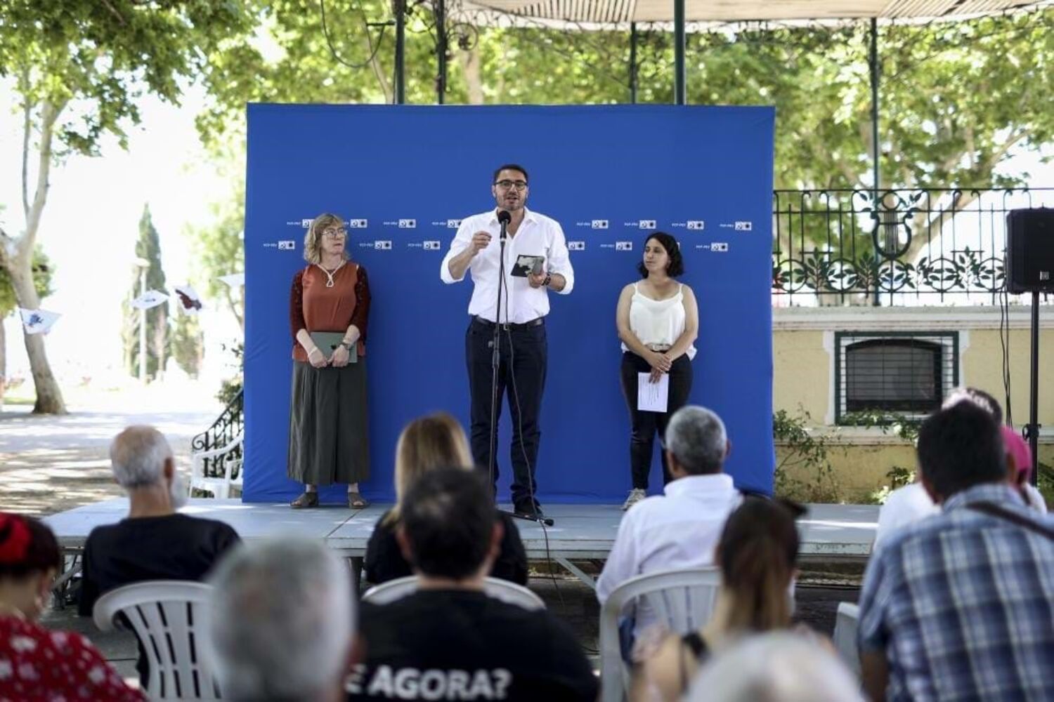 João Oliveira encabeçou a arruada no Parque das Nações ao lado do secretário-geral do PCP, Paulo Raimundo, rodeado por várias centenas de pessoas que entoavam cânticos como "Europa neoliberal só serve o capital" ou "Precisamos de Portugal com soberania nacional".