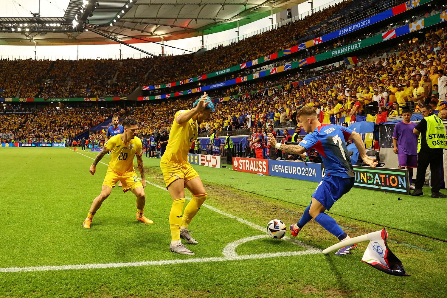 Os eslovacos estiveram a vencer, com um tento de Ondrej Duda, aos 24 minutos, mas os romenos restabeleceram a igualdade aos 37, por Razvan Marin, de grande penalidade, passando do quarto para o primeiro lugar do agrupamento.
