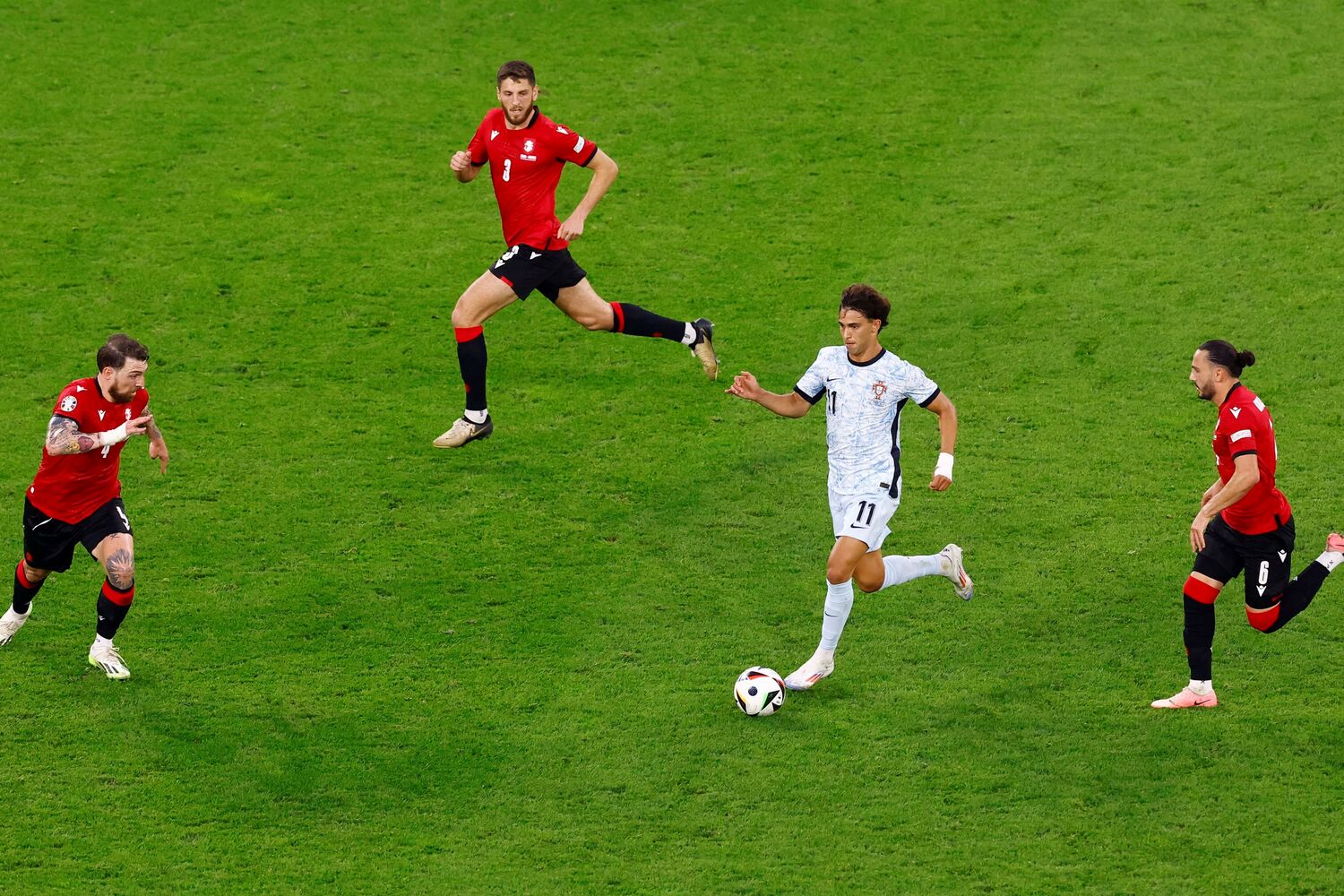 Portugal, que já estava apurado, perdeu esta quarta-feira por 2-0 com a estreante Geórgia, que se qualificou para os oitavos de final do Campeonato da Europa de 2024, nos quais a equipa lusa defrontará a Eslovénia.