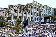 Mariupol, uma cidade no sudeste da Ucrânia, fustigada e totalmente destruída pelos ataques russos.